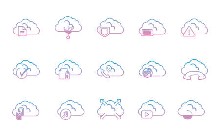 Cloud computing gradient style icon set design, Communication internet and connectivity theme Vector illustration