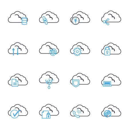 Set of cloud computing icons. Vector illustration. Editable stroke.
