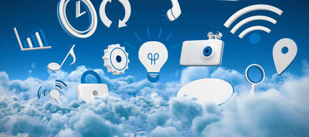 Cloud computing concept with icons over blue sky. 3D Rendering
