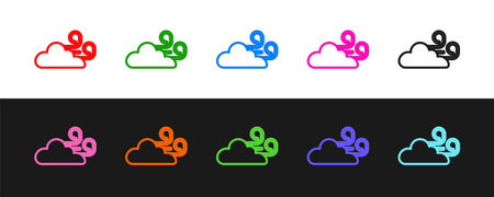 Set line Windy weather icon isolated on black and white background. Cloud and wind. Vector