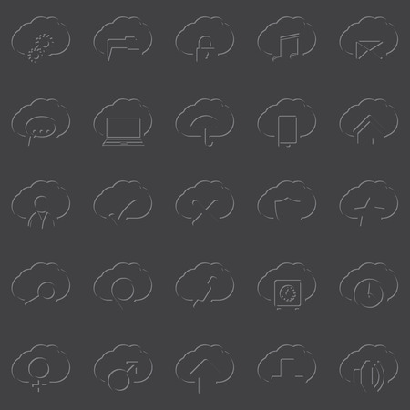 Cloud shapes collection. Cloud icons for the weather forecast, web interface or cloud storage applications cloud computing web and app. Vector design elements on black background