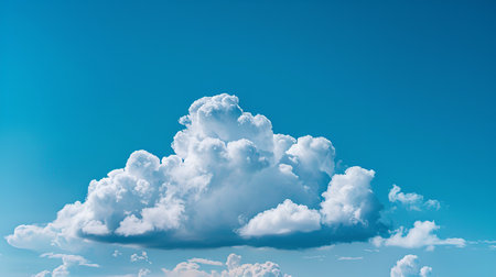 Captivating fluffy white cloud floating in a bright blue sky, exuding a serene atmosphere and showcasing the beauty of nature's weather phenomenon.