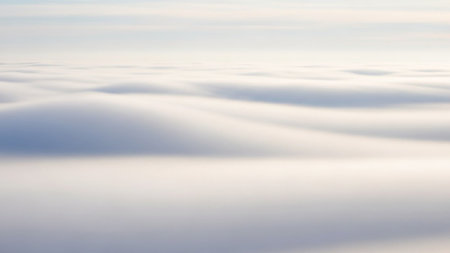 Soft focus aerial view of a vast blanket of white clouds seen from above. Clear details and vibrant colors enh...