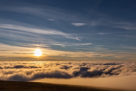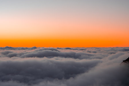 Cloud inversion at Pico do Arieiro, Madeira at orange twilight