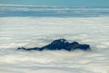 Travel and leisure, concept, drone flying high above the clouds, spiritual atmosphere. Natural celestial background.