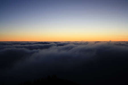 View of marine layer low clouds over Los Angeles at sunset, from Mount Wilson, in Angeles National Forest, California