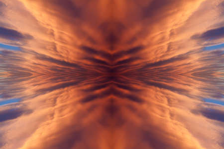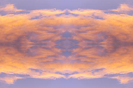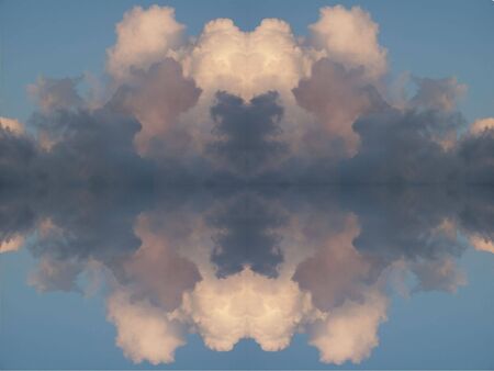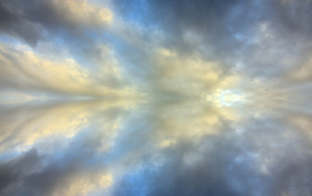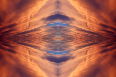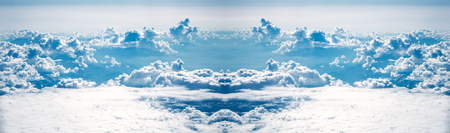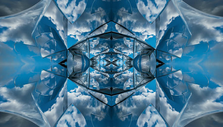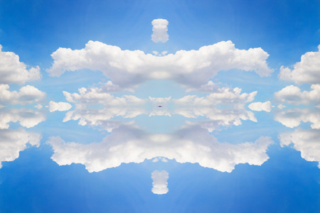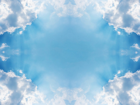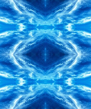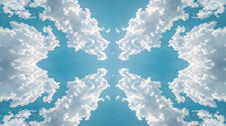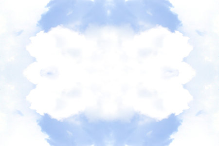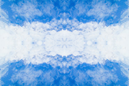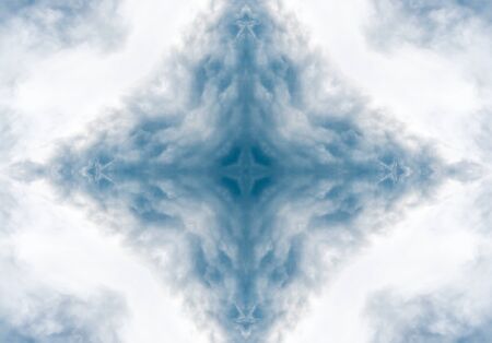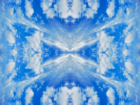 Blue sky with clouds - mirror reflection, kaleidoscope effect. Abstract natural background