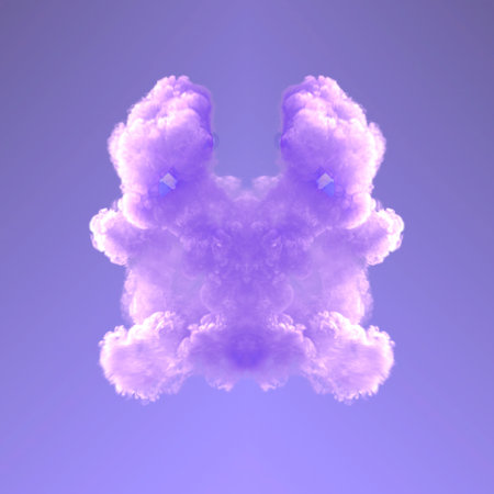 Symmetrical abstract background with purple chemical smoke cloud on light purple background. 3d rendering digital illustration