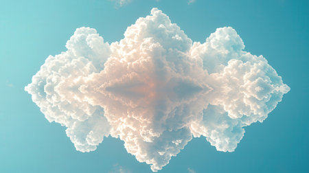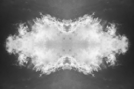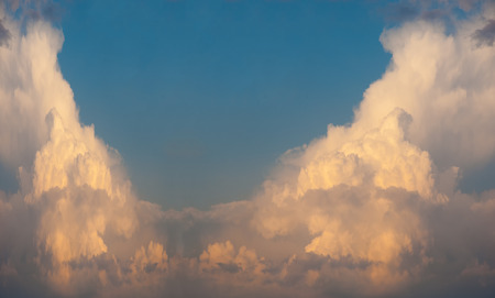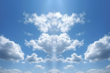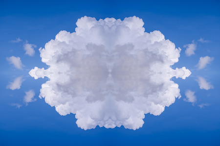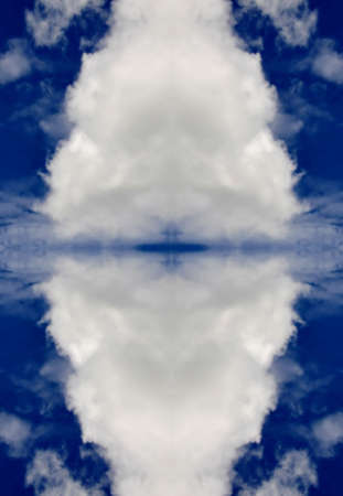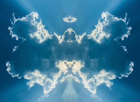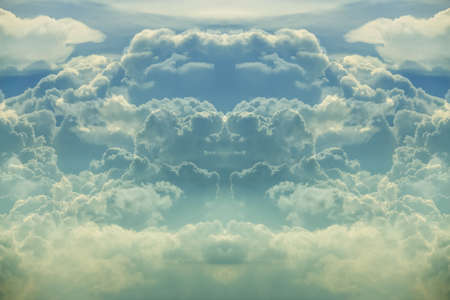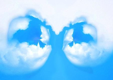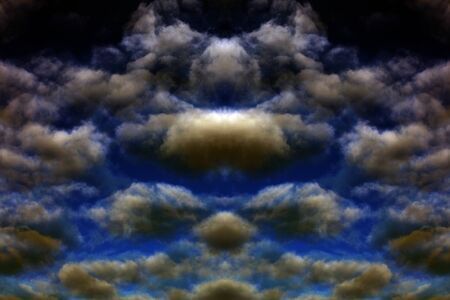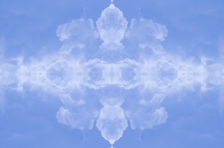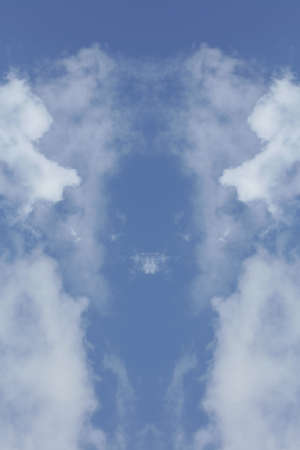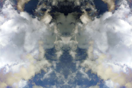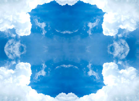 sky with white clouds in a kaleidoscopic composition simulating fantastic figures