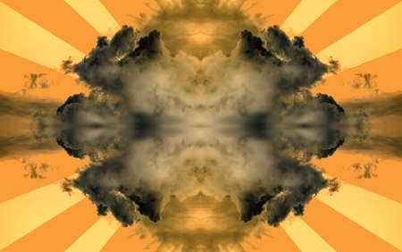 Surreal, dark clouds with sun rays Abstract illustration