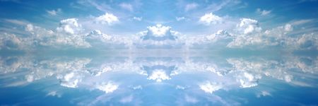 Blue sky with clouds reflected in the water surface. Cloudscape.