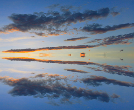 The sky with beautiful clouds reflected in the water surface