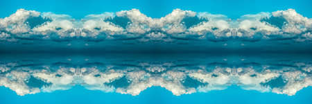 Blue sky with clouds reflected in water surface. Beautiful natural background.