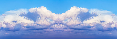 Abstract Panoramic sunset with fluffy clouds in the twighligth sky