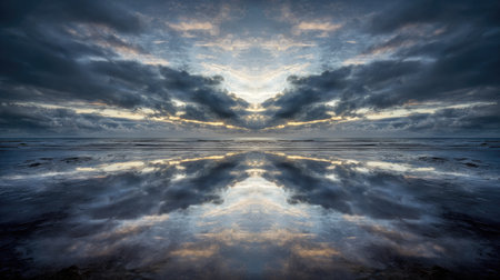 sky and ocean. a serene scene with clouds reflected in the lake. Generative AI