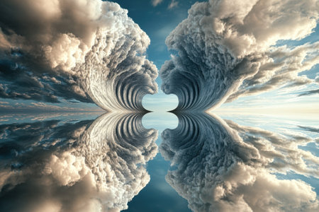Dreamscape blurring sky and sea with clouds drifting lazily on the surface