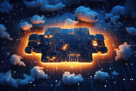 3D rendering of a cloud computing concept on a circuit board background
