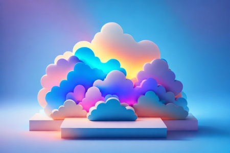 Colorful cloud illustration against a blue background, showcasing gradient hues of pink and blue, perfect for creative projects and digital designs