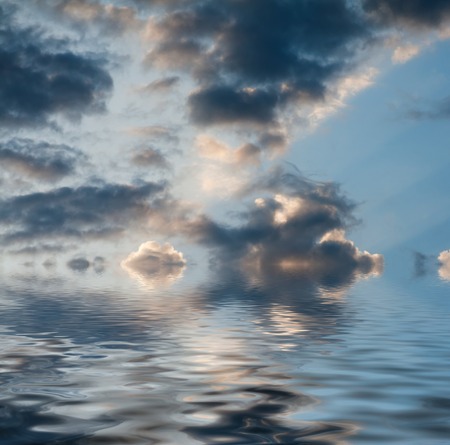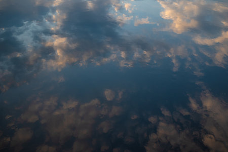 water surface with a reflection of the cloudy sky at sunset. High quality photo