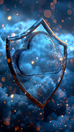 Visualize the importance of data protection with this futuristic cloud and shield design, illustrating essential cybersecurity concepts and digital safety in a connected world.