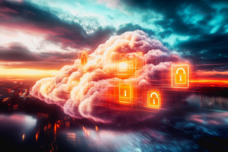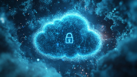 A captivating image of a digital cloud featuring a lock symbol, emphasizing the importance of cybersecurity and data protection in an increasingly digital age.