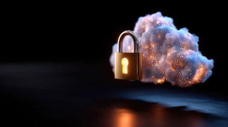 A captivating visual of a digital cloud featuring a glowing padlock, representing the essence of data protection, privacy, and security in a technology-driven world.