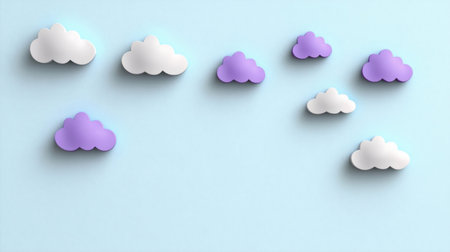 A collection of cloud-shaped objects in various colors against a light blue backdrop.