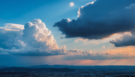A striking cloud formation hovers over a bustling urban skyline, showcasing the harmony between nature and architecture in a breathtaking scene.