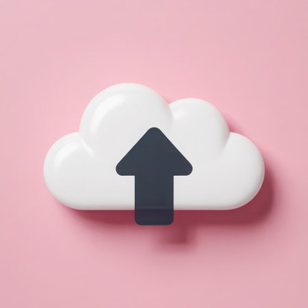 This image features a stylized cloud icon with a prominent upward-pointing arrow, representing the concept of uploading data or files to cloud storage. The clean design and pastel pink backdrop create a modern and approachable aesthetic, suitable for conveying digital services technology and online accessibility in various contexts.