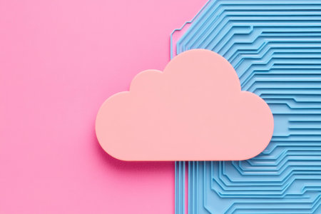 Abstract pastel pink and blue cloud with circuit lines, perfect for technology and cloud computing concepts, featuring a modern design and vibrant colors