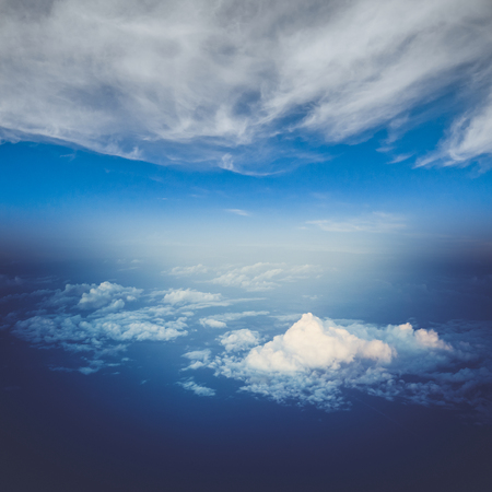 Above view from plane on blue sky and clouds
