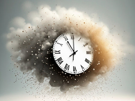 Time is running out concept shows clock that is dissolving away into little particles. time flies concept