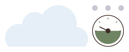 Cloud shape paired with a speedometer gauge. Ideal for cloud computing, technology, performance measurement, time management, efficiency, data storage, progress tracking. Simple flat metaphor
