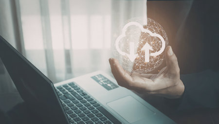Business people using laptop with cloud computing system , Storage and data transfer Cloud network, Cloud technology. Networking and internet service, sharing download and upload and internet service
