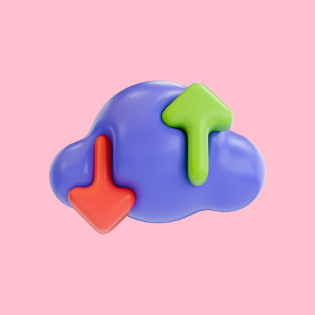 cloud download and upload icon 3d render concept for data sharing and file transferring system