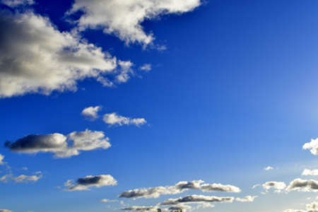 Deep blue sky background with withe clouds. Natural composition of nature.