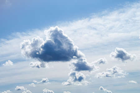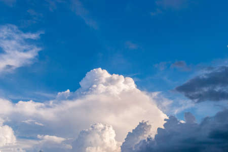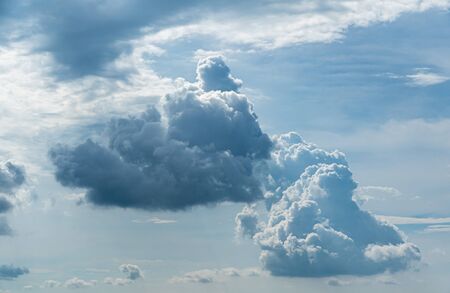 Thunderstorm contrasting cloud, blue sky and white cumulus clouds. Can be used as design element, background.
