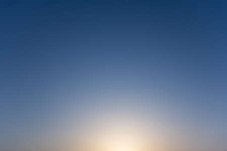 Clear blue sky in evening twilight with bright orange sunset light, simple beautiful calm tranquil minimalist landscape natural blue panoramic background