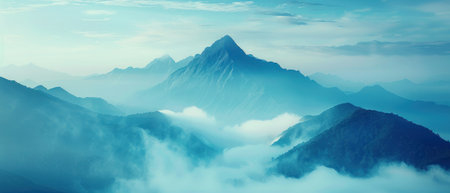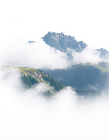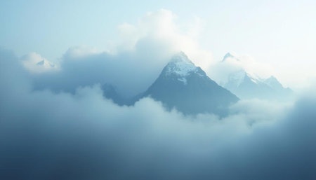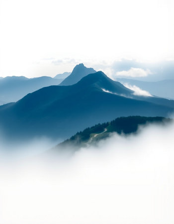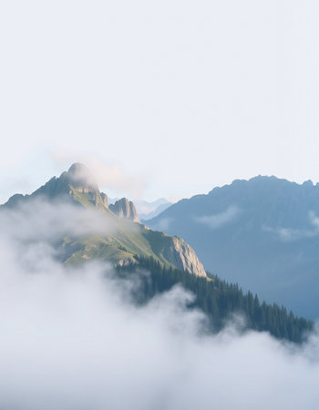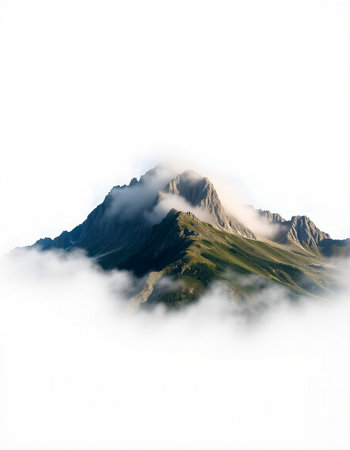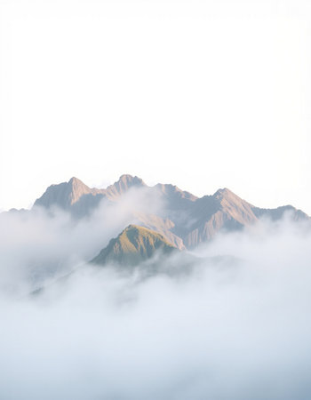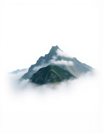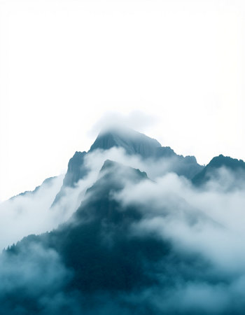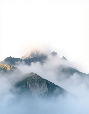 Serene mountain peak shrouded in mist, a breathtaking view.