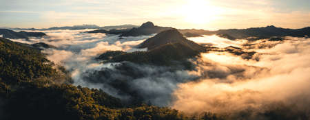 Beautiful sunrise over the mountains with fog in the morning,Thailand