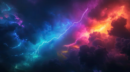 Lightning striking through colorful dramatic stormy clouds