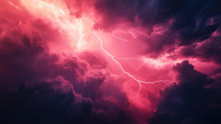 Bright lightning forks across dark storm clouds, creating a dramatic and electrifying atmosphere.
