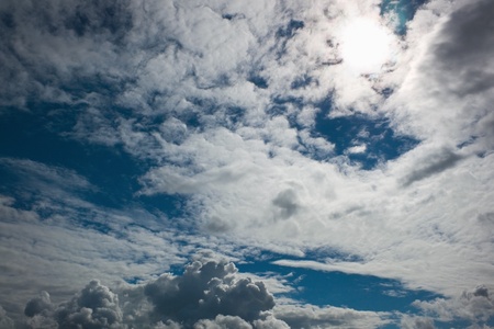 Beautiful white cloud formations on a blue summer sky
