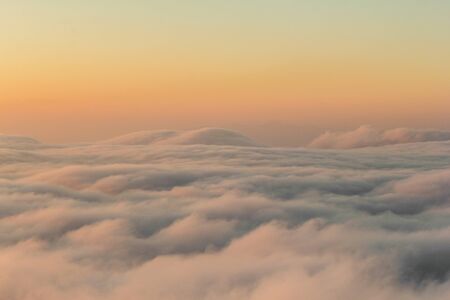 Beautiful sunset sky above clouds with colorful romantic light.