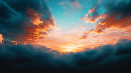 Dark stormy sky background with many colors. Natural dark clouds background.