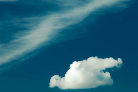 Dramatic cloudscape with dark blue sky and white fluffy clouds
