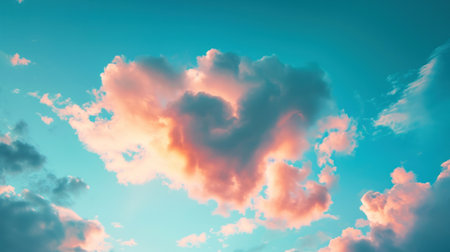 Soft, fluffy pink clouds drift serenely against a bright turquoise sky, creating a serene and vibrant atmosphere perfect for nature, travel themes, or relaxation.