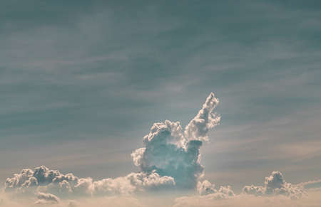 Blue sky with puffy clouds for background. Atmospheric phenomena in the formation of precipitation.