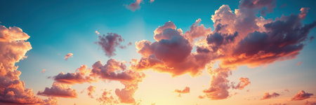 Beautiful cloudscape at sunset. Panoramic view of the sky.