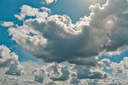 Thunderstorm contrasting cloud, blue sky and white cumulus clouds. Can be used as design element, background.